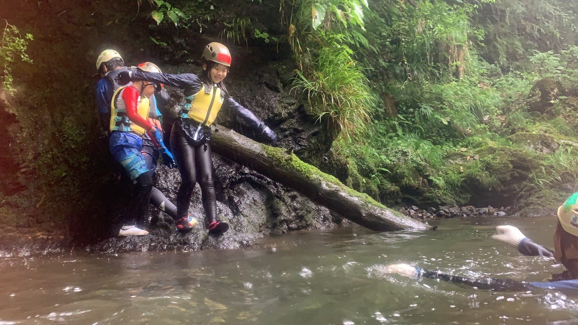 飛び込みできるポイントで、飛び込みを楽しんだり、少し川に流されてみたり、川の生き物を探してみたり!