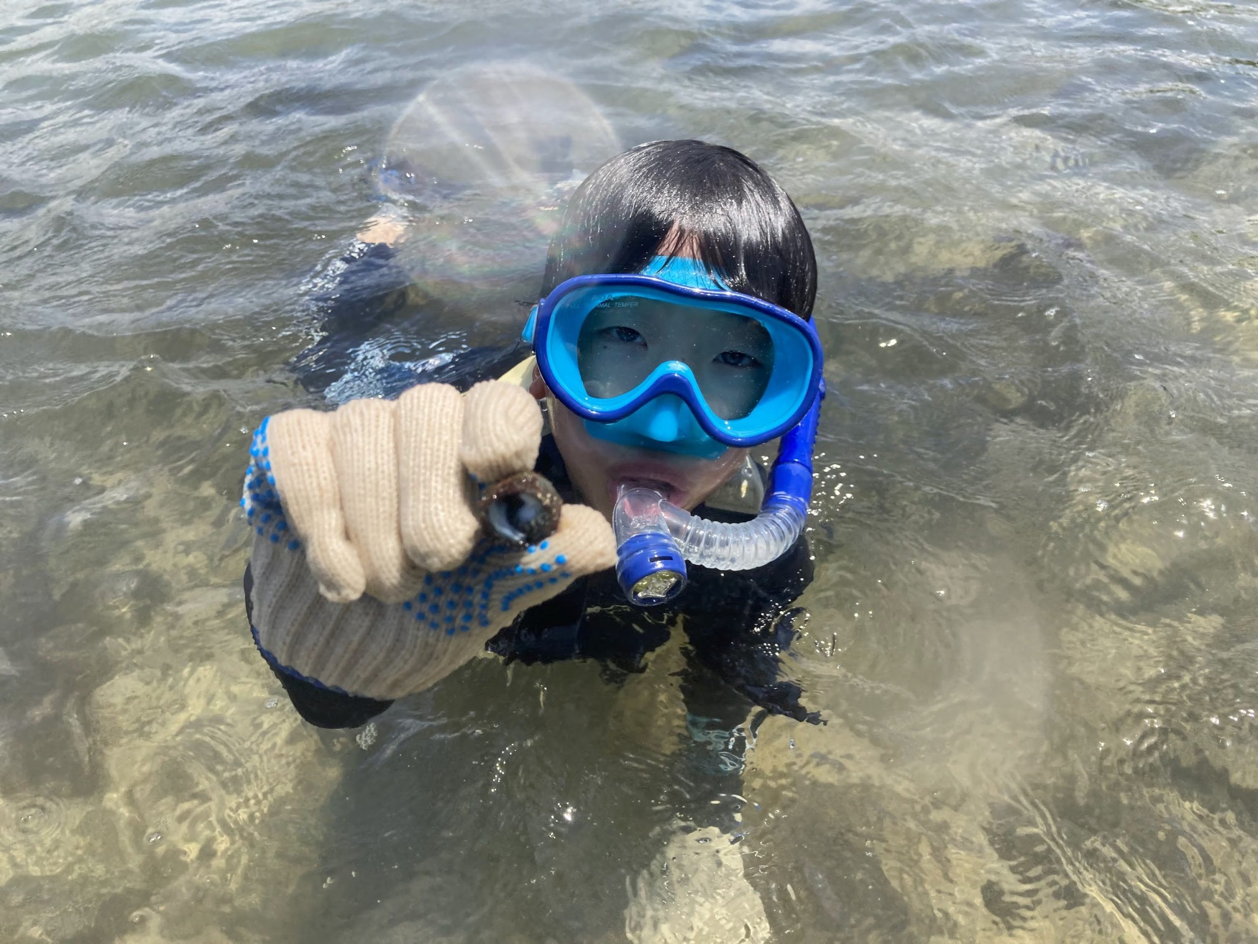 水中メガネと空気をすうためのスノーケル、両方を使って海の中をのぞいちゃおう!