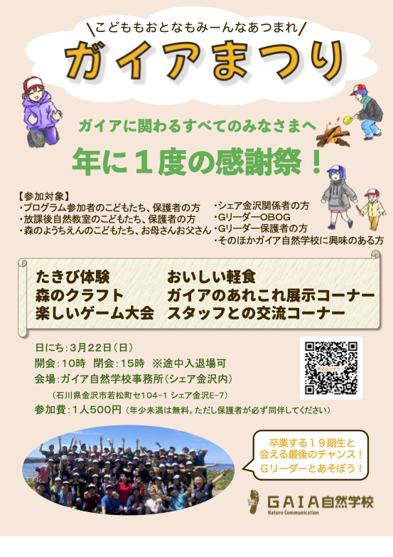 ・そのほかガイア自然学校に興味のある方(会員様のお友だちも大歓迎!)